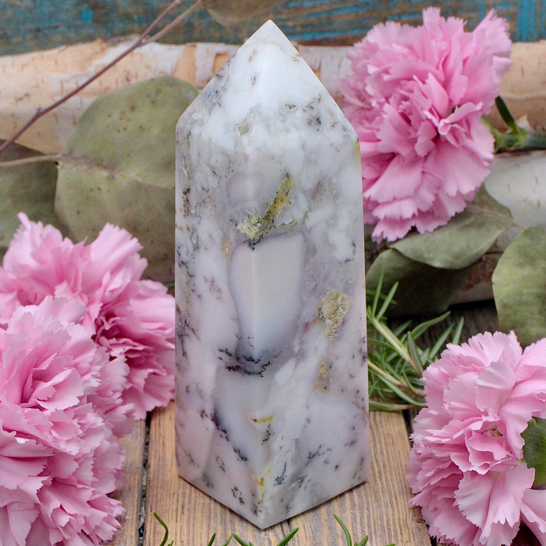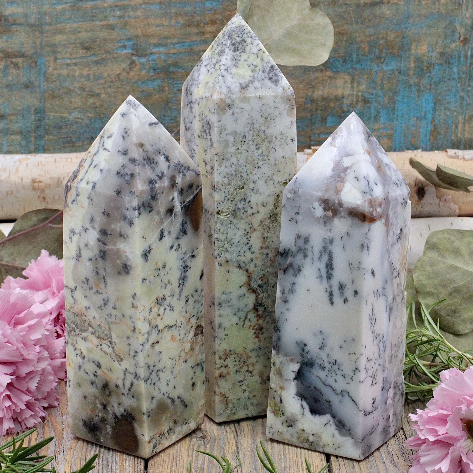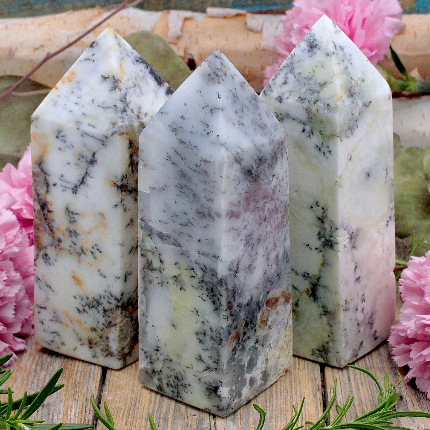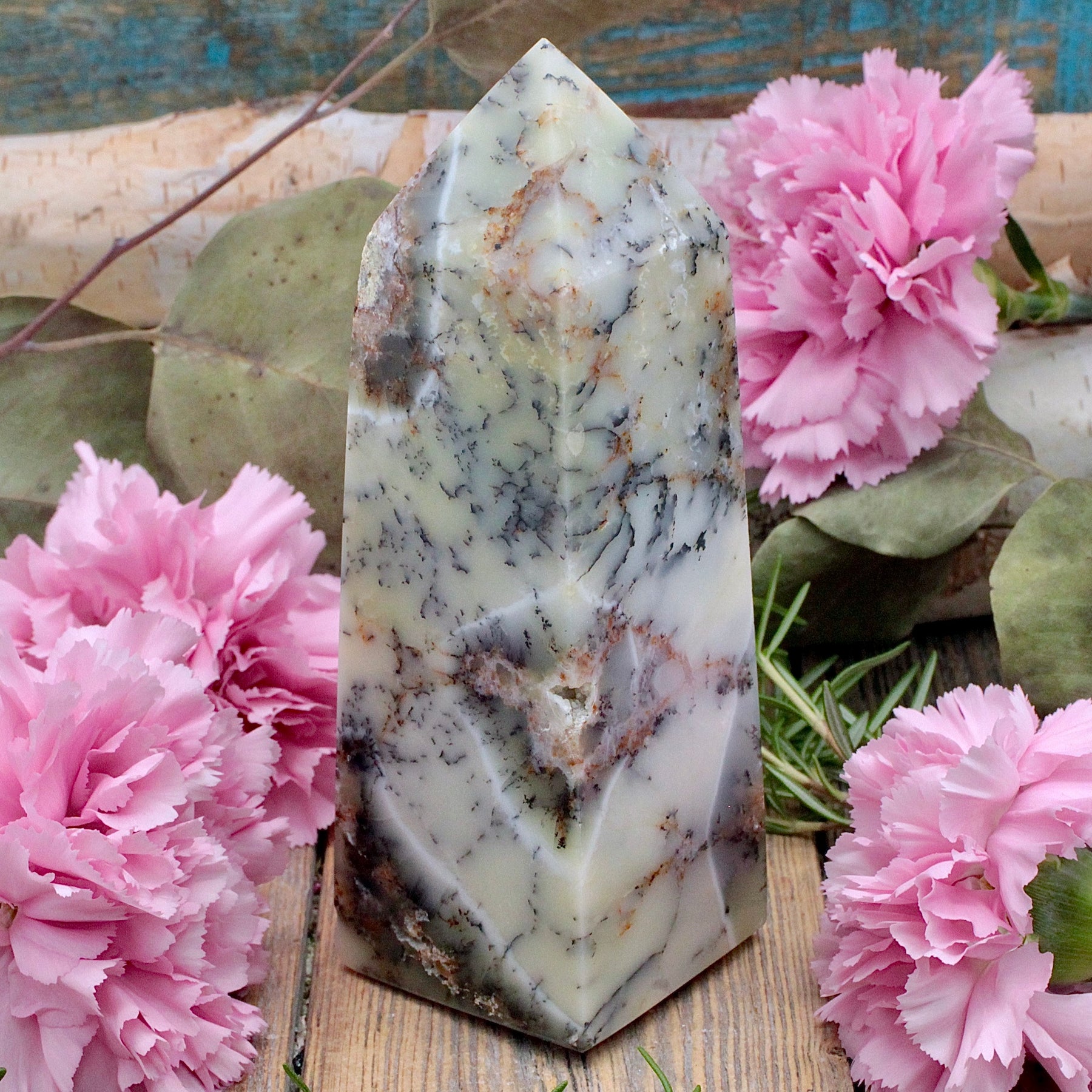 Dendritic Agate is known as 'The Stone of Plenitude.' It helps us realize and achieve abundance in all areas of life. It is a valuable companion and ally as we work to deepen our connection to Mother Earth. With a slow, calm energy. Dendritic Agate promotes a peaceful, stable environment that helps center our own energies, encouraging us to branch out and grow, while while keeping connected to our roots. It cultivates an ability to appreciate and enjoy our circumstances, and lends patience and stability in trying times. This crystal has a strong connection to the plant kingdom. It facilitates communication with the nature realm and can help maintain the health of houseplants and crops.